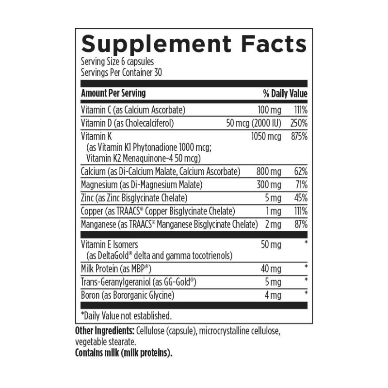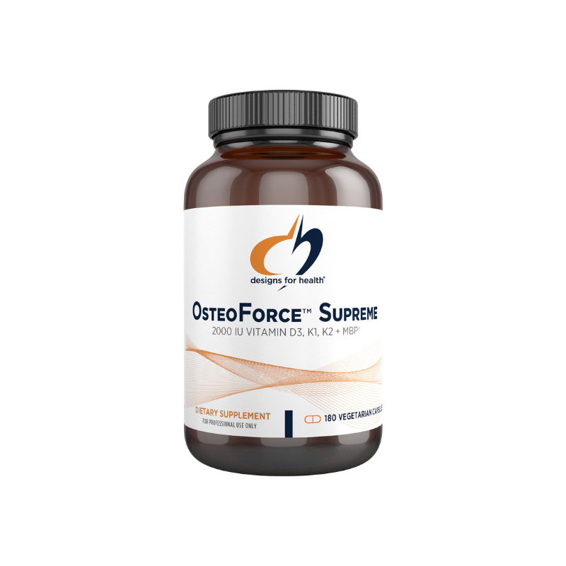 OsteoForce™ Supreme features the identical comprehensive array of bone-supportive nutrients found in our standard OsteoForce™, with the addition of vitamin K2 and the Milk Basic Protein (MBP®) and an increased level of vitamin D (50 mcg). MBP® is a multifunctional protein present in trace amounts in human and bovine milk whose main role is to assist the body in its ability to support healthy bone density.* MBP® is derived from the whey portion of milk protein, which is often well-tolerated, even by those with allergies/sensitivities to lactose or casein. Those with whey allergies/sensitivities may want to support their bone health with our standard OsteoForce™.